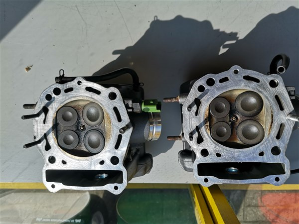 Set cilinderkoppen in goede gebruikte staat (1 bout van het kleppendeksel is dol) Gedemonteerd van een BJ 2013 met slechts 23000 km op de klok.