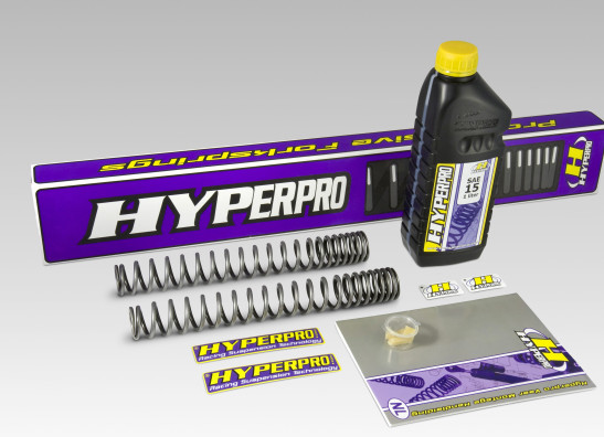 Hyperpro progressive fork springs are made of the best materials and best treatment for a durable solution to your bike. Hyperpro is known for developing the best solution for your bike. The progressive front fork kit will provide you easier cornering, a shorter braking distance, improved tire life, give a better balance in the bike and better overall feedback of your bike. A Hyperpro progressive frontfork spring kit comes with the correct oil and setup data for your bike.