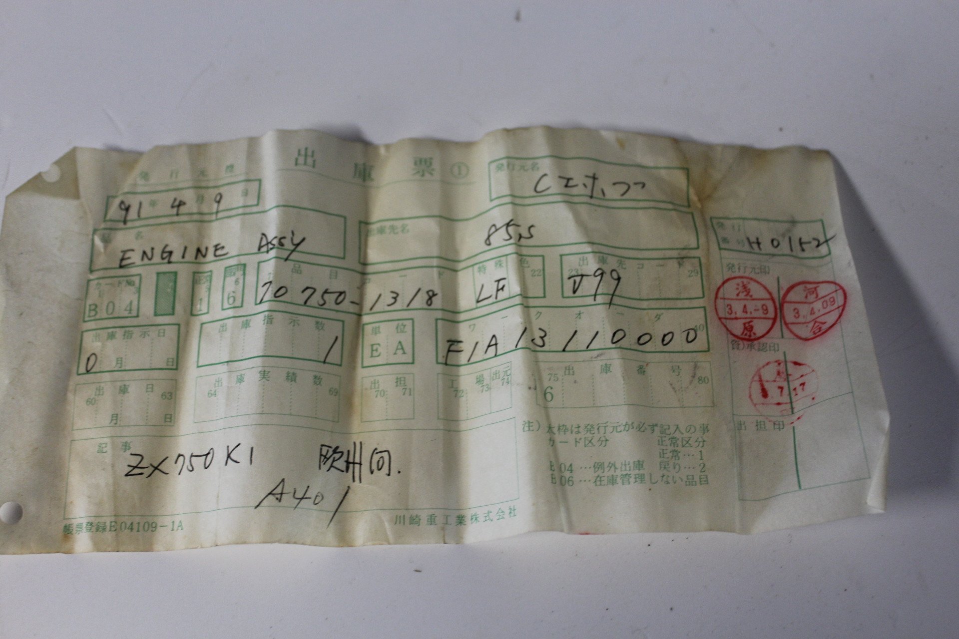 Very rare! Complete new genuine engine for the ZXR750RK with the Keihin CR flatslides. Unused, complete new with all the surround parts like starter engine, waterpump etc.