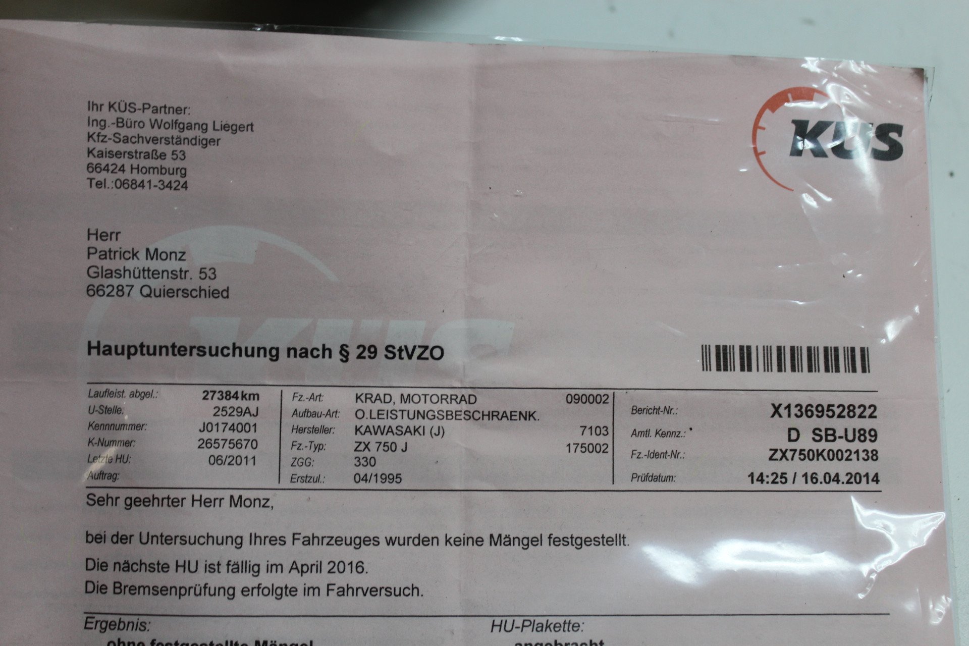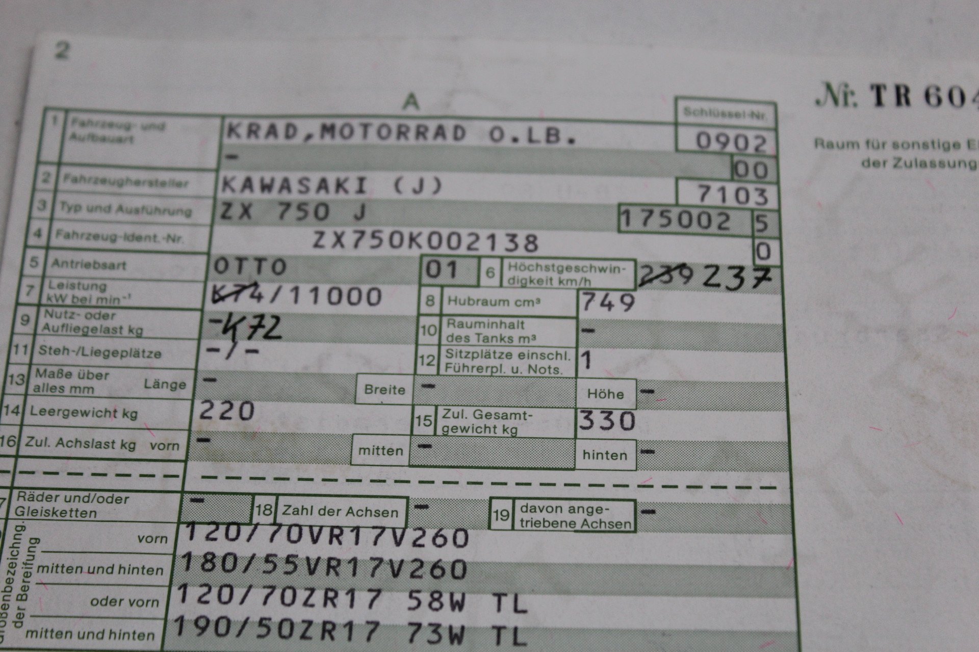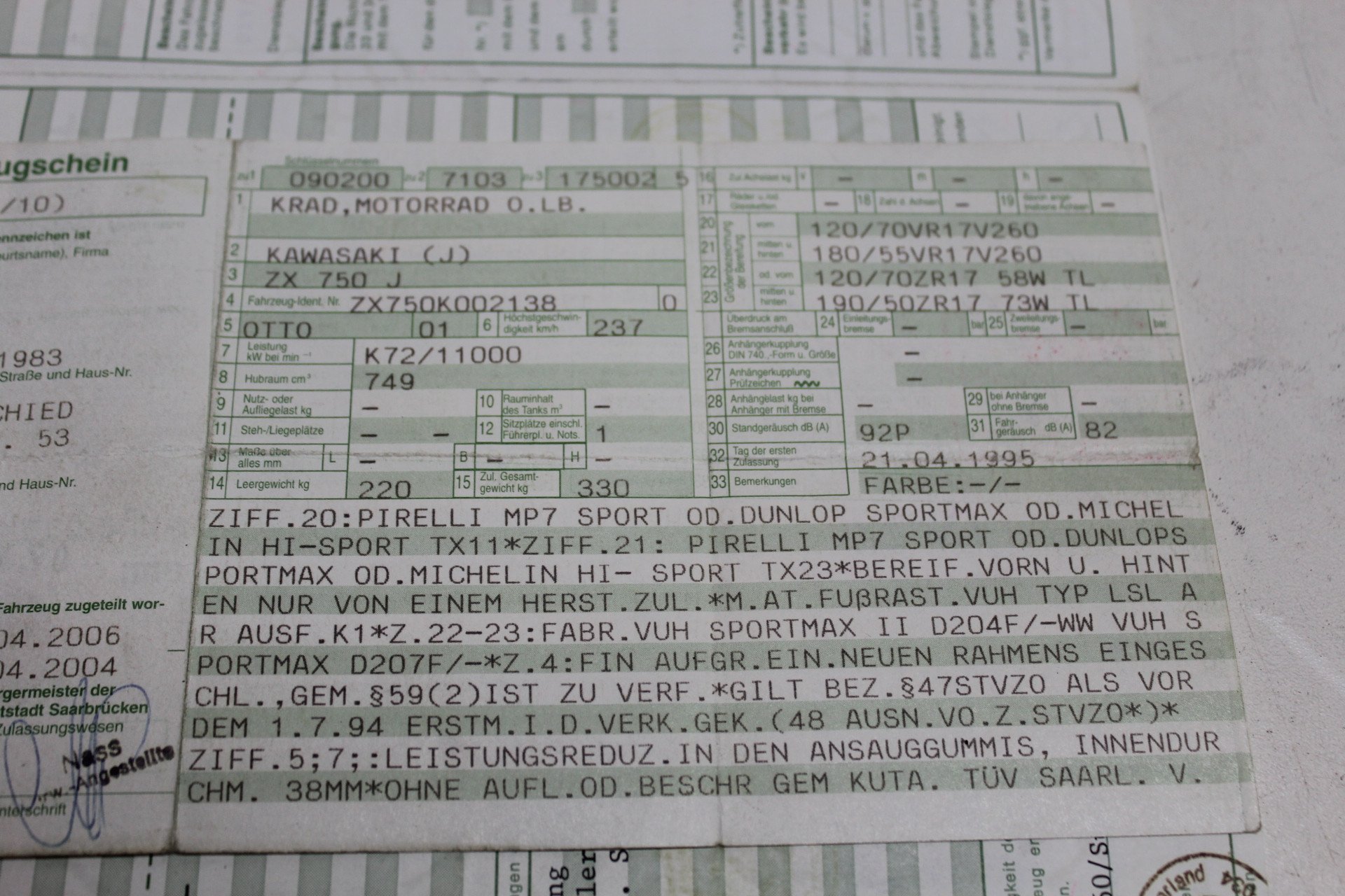 ZXR750RK frameset with German papers