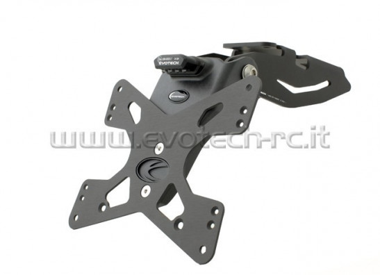 Deze Evotech kentekenplaathouder wordt in Italie ontworpen en geproduceerd. Deze revolutionaire kentekenplaathouder is verstelbaar, extreem licht en gemaakt van zwart geanodiseerde, door laser uitgesneden aluminium onderdelen, Het kentekenplaat gedeelte is gemaakt van een techno-polymer materiaal met anti vibratie systeem.