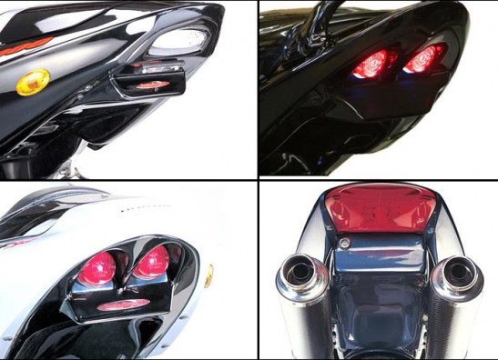 De tailguard is een vervanger van het originele/lelijke zwarte kentekenplaat gedeelte, zodat de originele seat-unit afgesloten word. Deze tailguard is gemaakt van ABS kunststof en wordt geleverd inclusief bevestigingsmateriaal en knipperlicht beugeltje. Let op, het gedeelte waar de kentekenplaat nu aanhangt moet afgezaagd worden. Inclusief 2 nieuwe achterlichten.