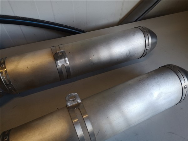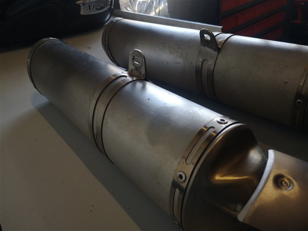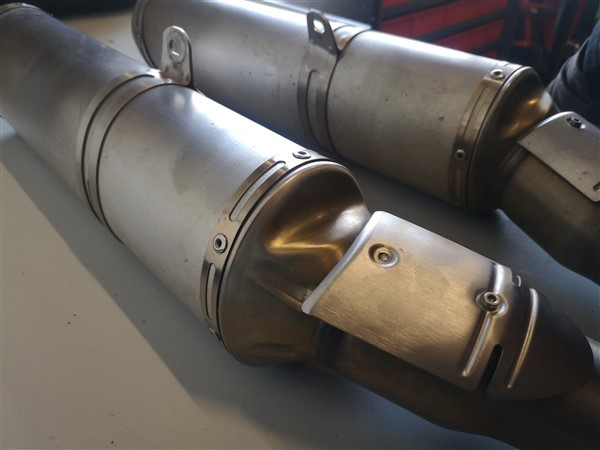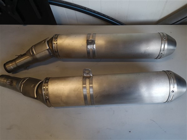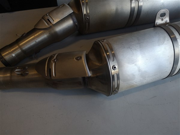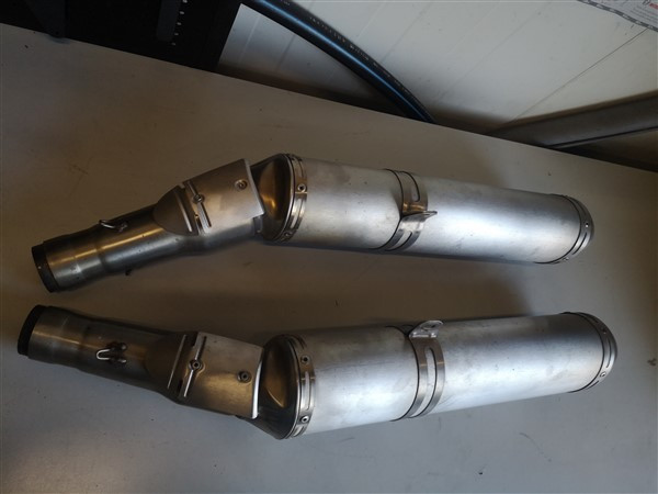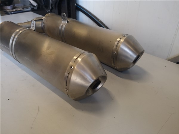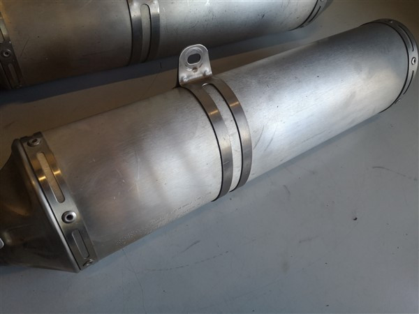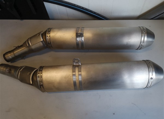 Set komt van een rsv1000 factory bj 2008 af. Van de linker demper is er een boutje afgebroken van het hitteschildje (zie foto). Verder normale gebruikerssporen en geen schade.