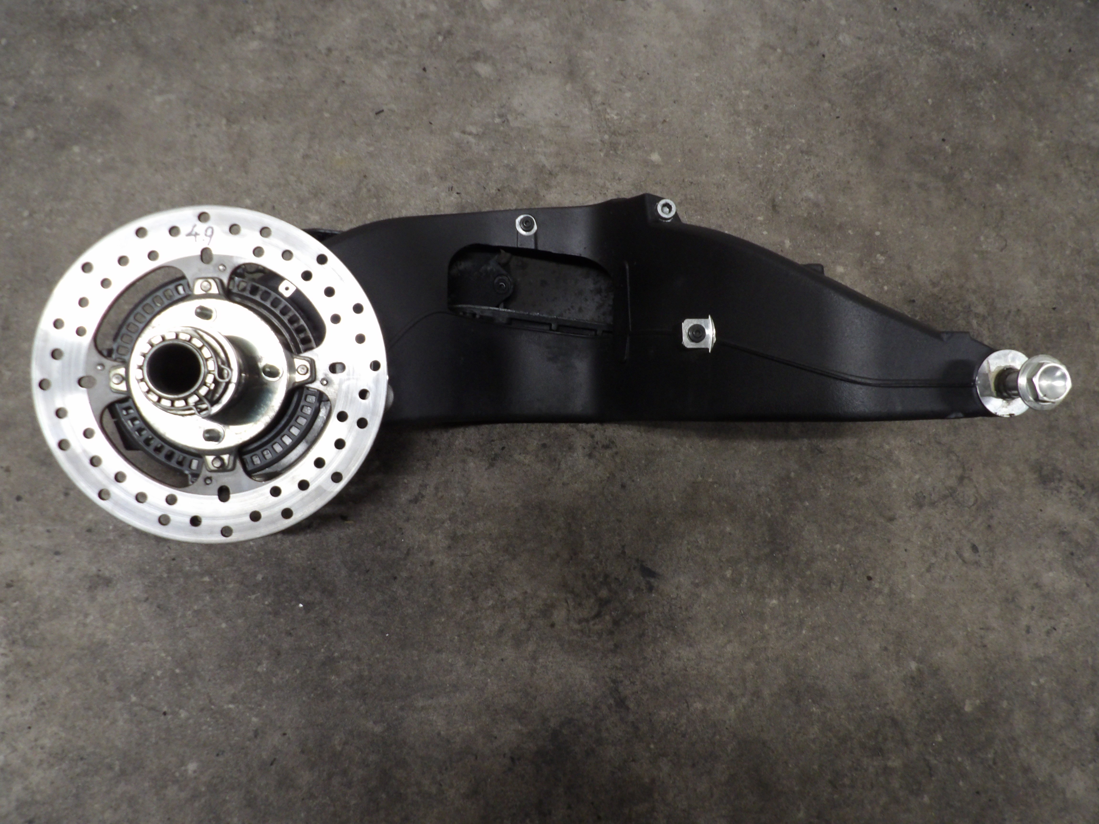 Compleet met as,tandwieldrager en remschijf van 4,9mm dik!