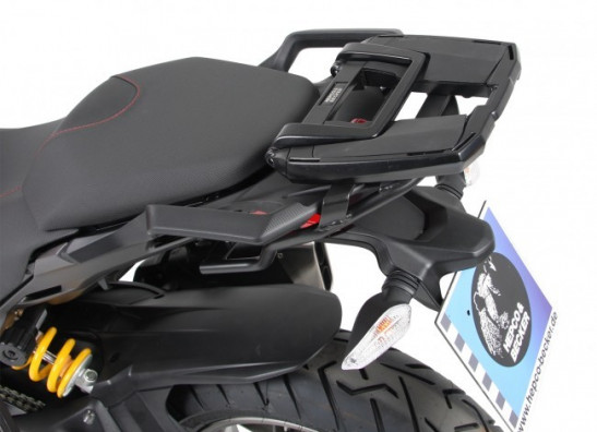 Een topdrager Easyrack is de manier om een topkoffer, extra bagage of een universele topkoffer op de motor te kunnen bevestigen.Bij deze drager is de opstaande beugel in een handomdraai neer te klappen.