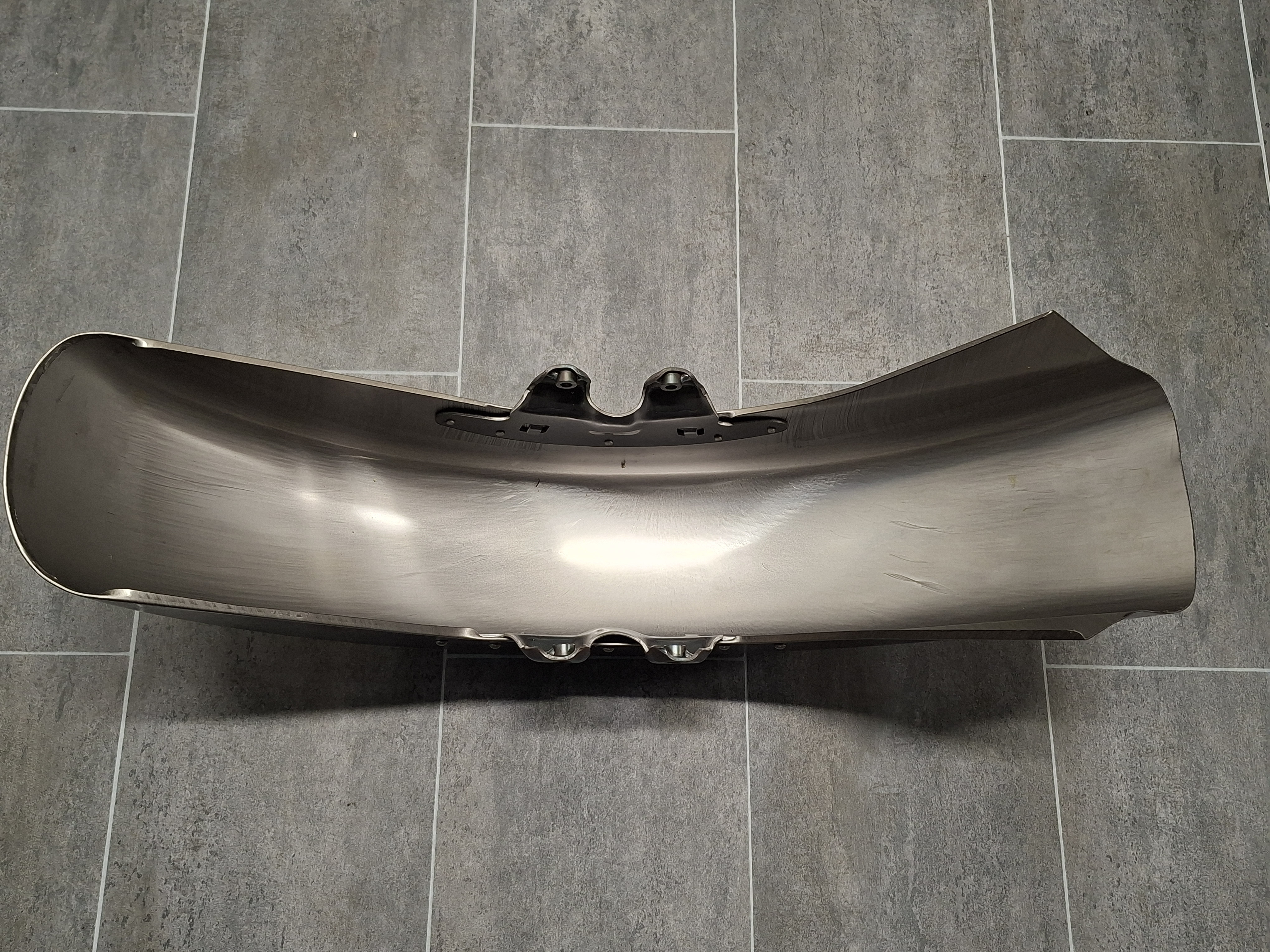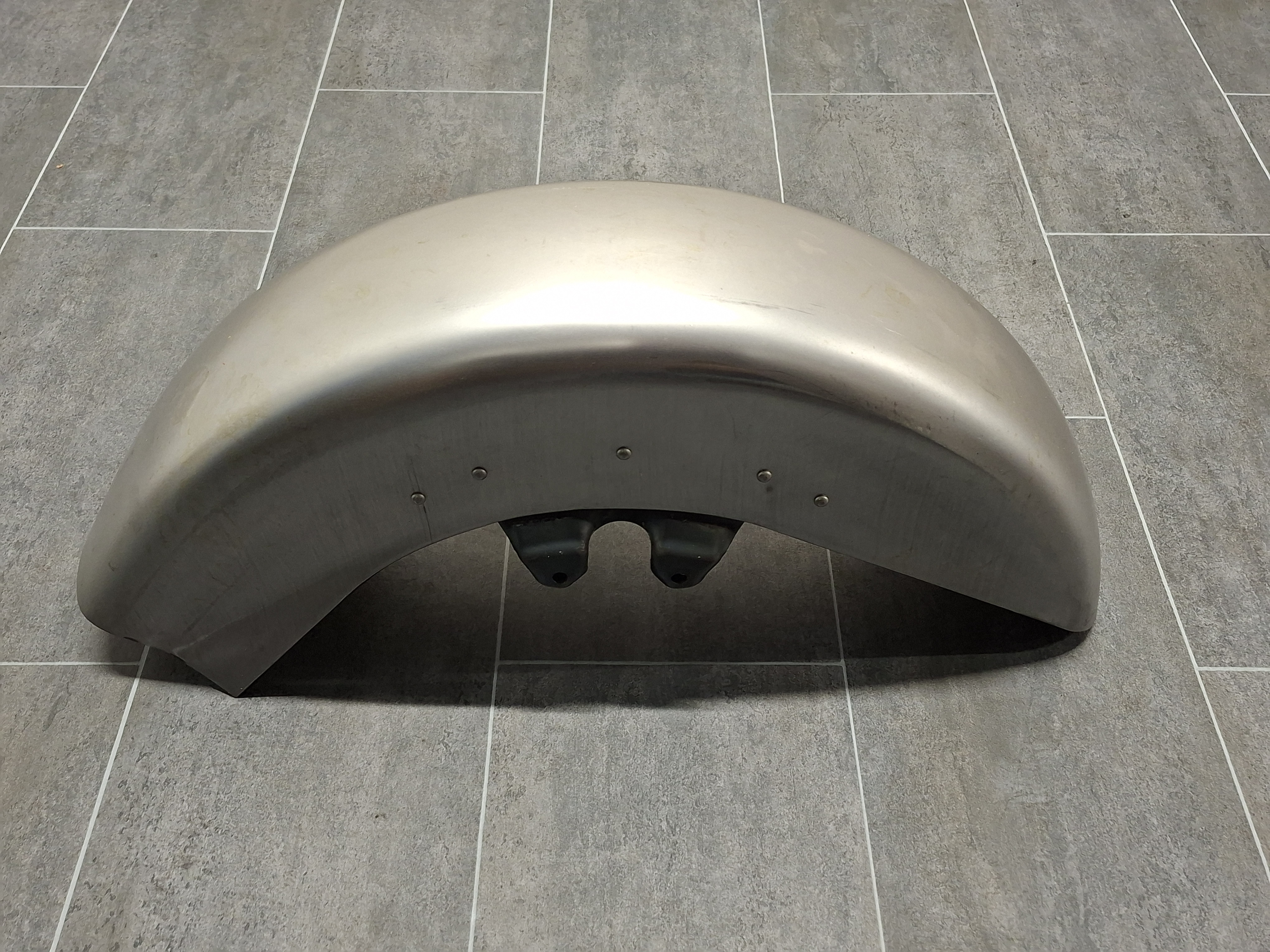 Replica glide style front fender is constructed of steel and has a raw finish.