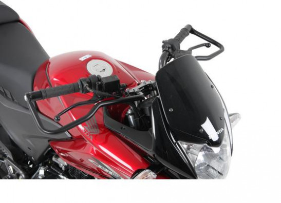 Deze Hepco&Becker valbeugel is speciaal ontworpen om de voorzijde van de motor te beschermen bij omvallen of een schuivertje. Denk hierbij aan de koplamp, stuur en hendels. Deze beugel wordt samen met de valbeugel en de achterbeugel veel gebruikt door rijscholen.