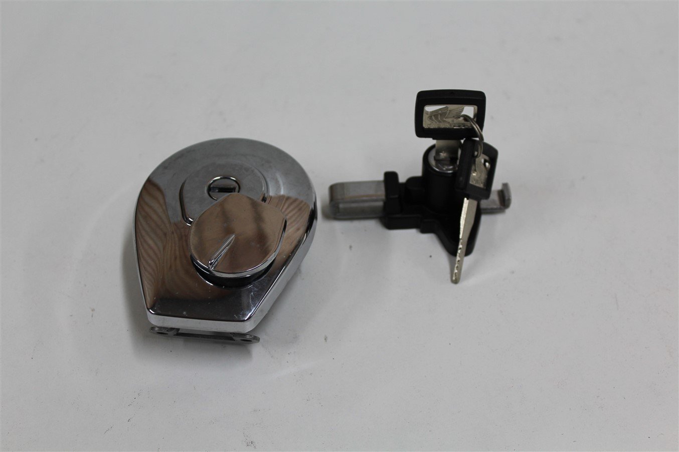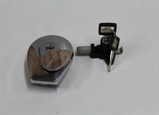 Tank fuel cap and helmet holder lock