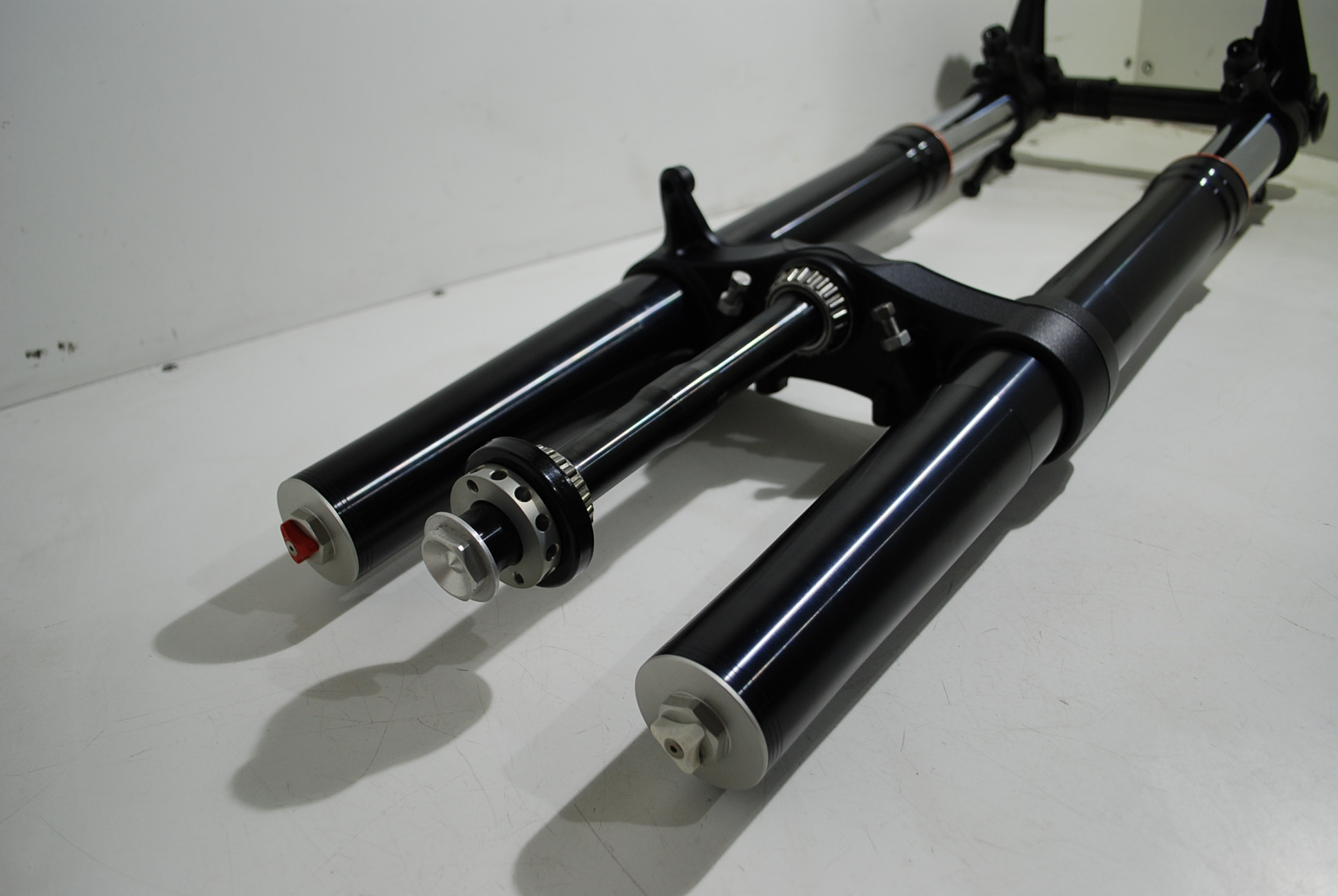 Zo goed als nieuw ! compleet inclusief as en afstand bussen van het voorwiel en het t stuk - sold as complete set as shown in the picture