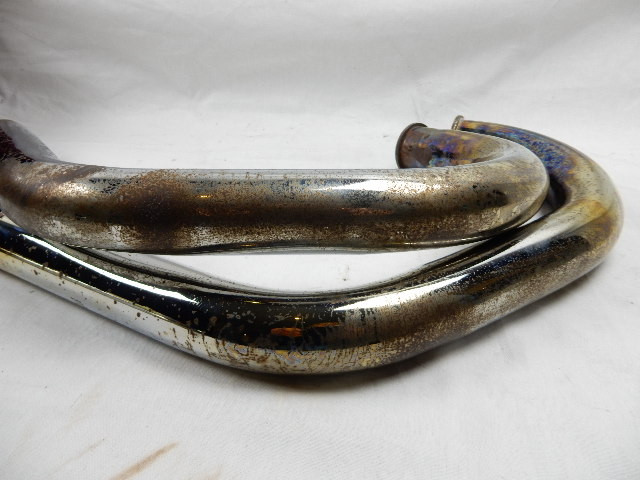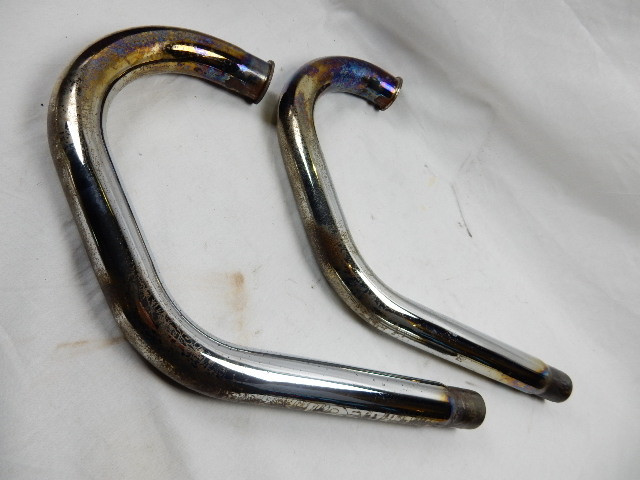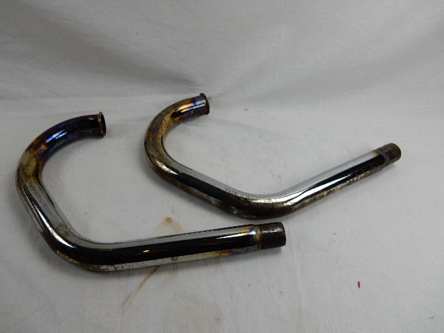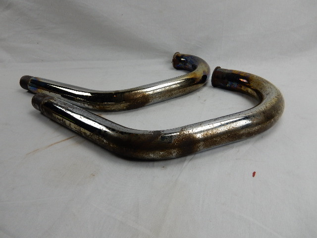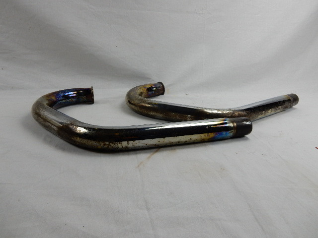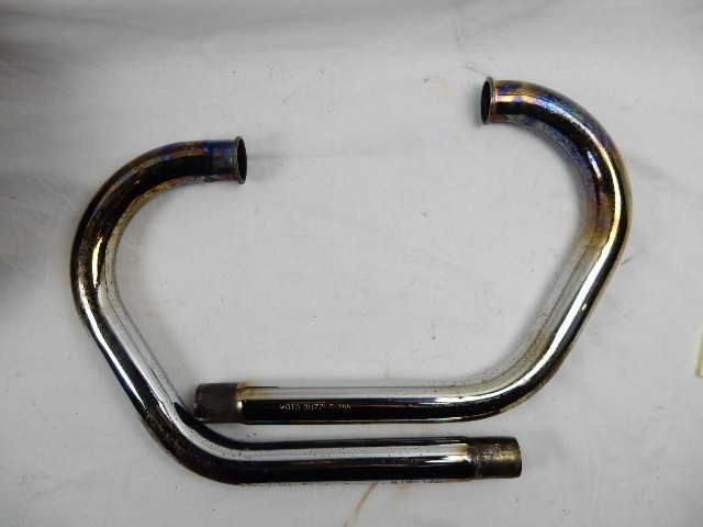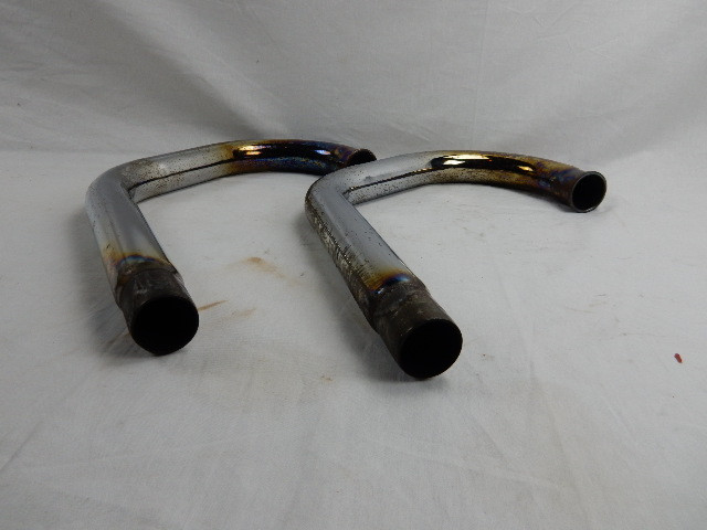 UiItlaatbochten , Links en rechts voor Moto Guzzi California 1100, Cali III, Cali EV, SPIII, 1100 GT en 1000S. GU29120950 en GU29120951. ER zit wat aanslag en roest op en een schaafplek op de rechter bocht, zie fotos. Verder in goede staat.
