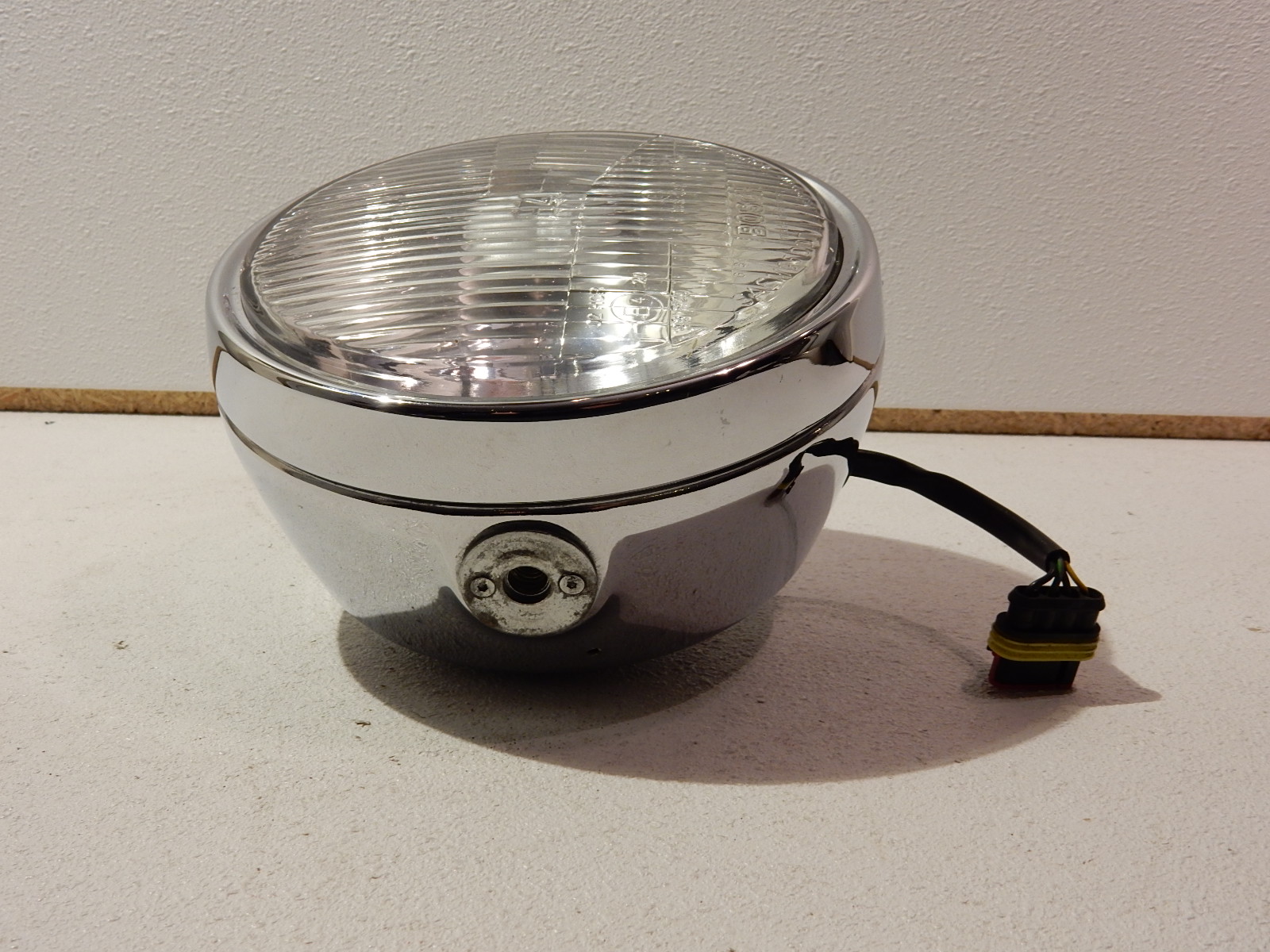 Koplamp 180mm voor Moto Guzzi California EV en Centauro. GU02740501. klein gaatje voor draad in achterkant. Small hole at the back.