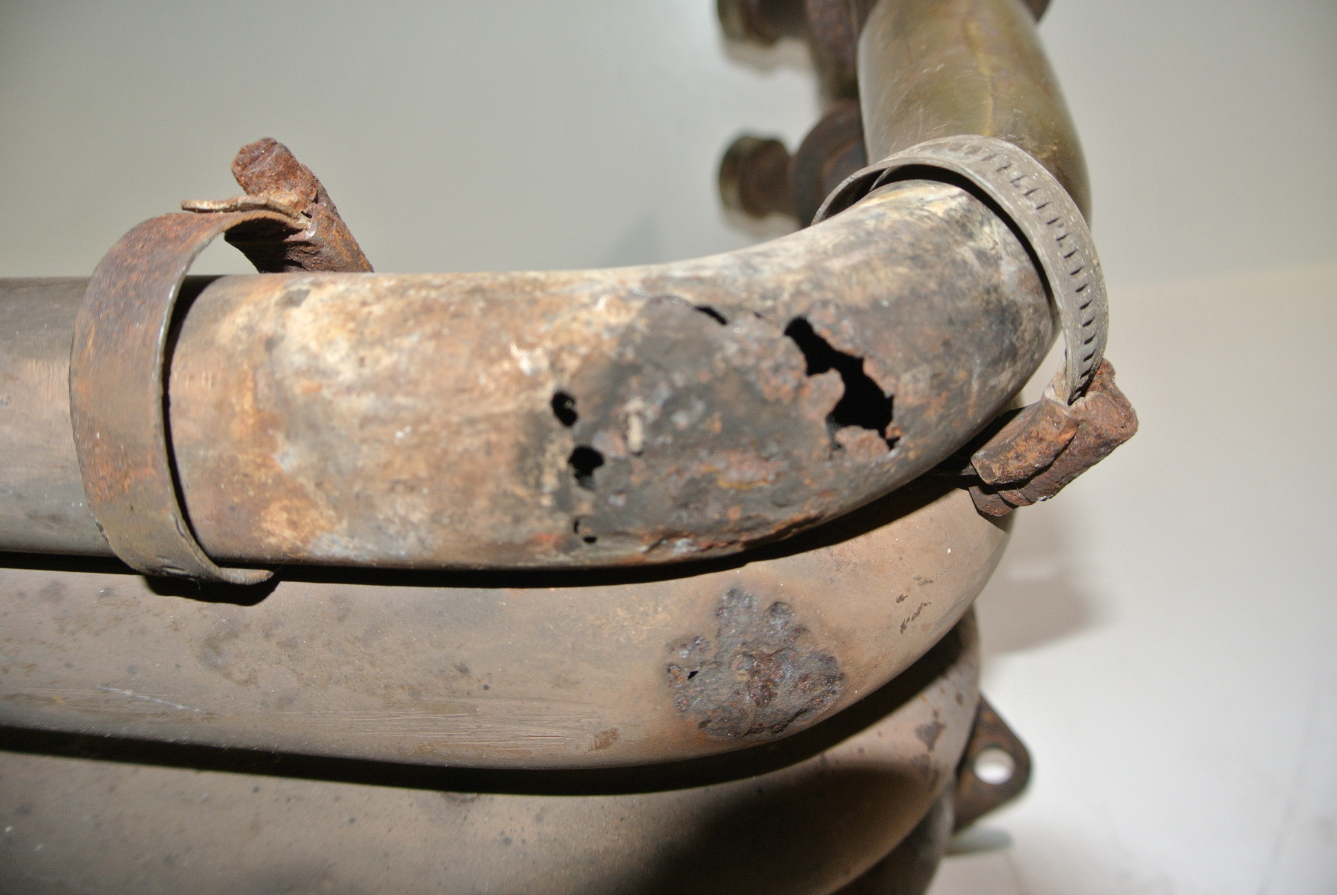 Uitlaat heeft een gat. veel roest.
