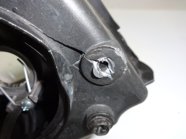 Linker koplamp. Meerdere barsten + bevestigingspunten stuk, zie foto's.